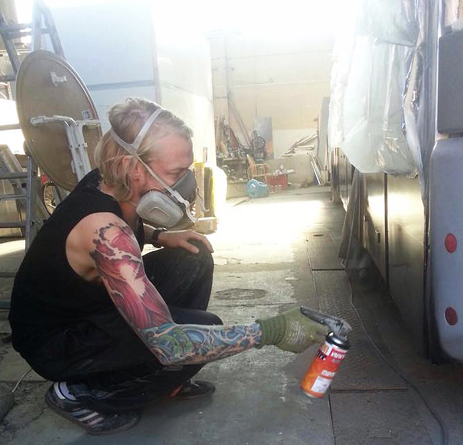Seine Leidenschaft wurde gepackt und führte ihn zu unzähligen Projekten mit Graffiti und Airbrush.